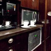 Other interior amenities may include individual entertainment systems, office equipment including satellite communications, a wireless local network, and a fax machine and printer, and a full-sized forward or aft galley with fitted storage areas for utensils, a water-sterilization system, and dual coffee makers. Both a forward and aft lavatory are standard aboard the G-450 cabin.